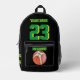 Mochila baloncesto deportes de noche a escuela Monograma Iniciales Patrón gris Etiqueta de equipaje negro. Elegante simple y simple chicas y niños de diseño blanco y verde y agradable, con texto personalizado y monograma, con un patrón monograma exclusivo, regalo perfecto para viajeros, deportes escolares y otros