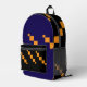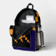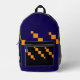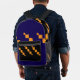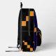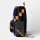 Una mochila de moda con un sorprendente patrón geométrico pixelado en naranja, negro y azul profundo, mezclando estilo con practicidad. Ideal para la escuela, el viaje o el uso diario.