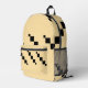 Una mochila de moda con un sorprendente patrón geométrico pixelado en naranja, negro y azul profundo, mezclando estilo con practicidad. Ideal para la escuela, el viaje o el uso diario.