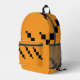 Una mochila de moda con un sorprendente patrón geométrico pixelado en naranja, negro y azul profundo, mezclando estilo con practicidad. Ideal para la escuela, el viaje o el uso diario.