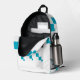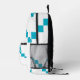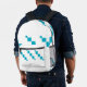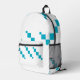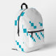 Una mochila de moda con un sorprendente patrón geométrico pixelado en naranja, negro y azul profundo, mezclando estilo con practicidad. Ideal para la escuela, el viaje o el uso diario.