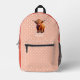 Mochila impresa sobre el tema de la Escuela de NARANJA Vaca Highlander de NEON. Cumpleaños de tu chica. Elevar tu juego de regalo con la caja de regalo rosa de la vaca Highlander