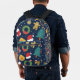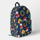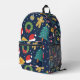 Celebra la temporada con estilo con la mochila de vacaciones de **Jolly Jumble**! Con un diseño animado de coronas, ornamentos, medias y hombres de jengibre sobre un fondo azul oscuro, esta mochila es perfecta para llevar lo esencial de tus vacaciones y difundir alegría festiva donde vayas.