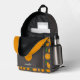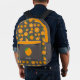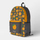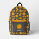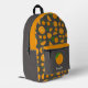Una mochila para la escuela, trabajar o caminar con una rebanada, mitad rebanada y todo el patrón naranja, todo en tonos marrones y naranjas. En la parte delantera encontramos un ilustracion naranja y un texto de su elección con su nombre o personalizable: perfecto para los niños.