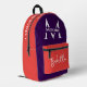 Mochila personalizado - Mochila Monograma personalizada con nombre e inicial - Bolsa escolar personalizada para niños Chicas. Se muestra una mochila morada y roja con una tipografía elegante en blanco pero cambia el color base a cualquier color como negro, azul, blanco o cualquier otro color con un clic para un solo color o mezcla y los colores coincidentes para diferentes partes de la mochila, bolso de libro para hacer su propia plantilla de diseñador para una mochila única perfecta. Haga clic en el botón "Personalizar" y utilice nuestra herramienta de diseño para personalizar y personalización - añadir nombre, texto, diseño, foto o logotipo, cambiar colores base con colores de confort y para editarlo más a fondo. Viaje perfecto, regrese a la escuela, al gimnasio, a la bolsa de trabajo o a la mochila portátil y empacar todo lo que necesite en esta robusta mochila y llevarla como una mochila de la noche a la mañana o como una mochila de viaje. Pida su mochila única personalizado personalizada para uso personal, viajes, cumpleaños o regalos de Navidades.