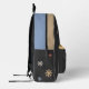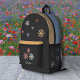Una mochila negra con colores amarillos y azules adicionales y flores pastel para las melodías de Marguerite y un texto de personalizable: perfecto para una novia romántica!