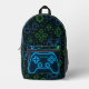 Prepárate para las sesiones escolares o de juegos con esta mochila para jugadores neonatos! Con brillantes iconos azules y verdes de videojuegos en un fondo negro, esta bolsa es perfecta para los niños que aman el juego. Personalice con su nombre un estilo de regreso a la escuela único.