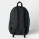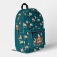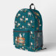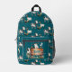 Mochila para niños con diseño de vacas, cabras y pollos. Personalice este paquete azul verde azulado de bonito con el nombre del niño. El diseño temático de las granjas es perfecto para niños o chicas y cuenta con una divertida colección de amigos de los astilleros. Más animales se alinean a través de la cremallera y las secciones laterales. La plantilla de nombres está sobre un rústico cartel de madera en el bolsillo con cremallera.