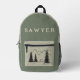 Diseño de campamento de montaña dibujado a mano en mochila neutra.