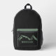 Si te gusta hacer caminatas, mochileros y aventuras al aire libre, consigue esta mochila negra con montañas verdes y texto de personalizable.