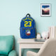 color azul y amarillo monograma Iniciales Patrón gris Etiqueta de equipaje negro. Elegante diseño sencillo, sencillo y moderno, con chicas y niños de color azul y amarillo, con texto personalizado y monograma, con un patrón monograma exclusivo, regalo perfecto para viajeros, deportes escolares y otros