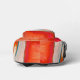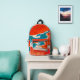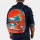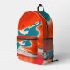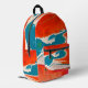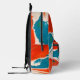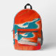 es una mochila con una imagen de un remolino azul y naranja sobre ella