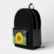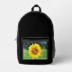 Esta alegre mochila es toda negra excepto por una foto brillante en el centro y en el frente de un girasol "sonriente", cortesía de una visita oportuna de un par de abejas. Completamente alineada y de aproximadamente 17" x 12 x 5", esta mochila ligera está hecha de poplin de poliéster duradero, tiene dos cámaras dentro para almacenamiento de laptops, bolsillos laterales de malla y una etiqueta de identificación. Las correas de hombro son acolchadas y ajustables. Siéntase libre de contactarme a través de Zazzle si tiene preguntas sobre esta mochila. Estoy feliz de ayudar y no hay costo adicional.