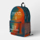 Mochila VTVB liderada por Espíritu con un diseño abstracto silencioso que muestra La espiral de convertirse en llama bajo el lema Mantra: guiada por espíritu. Alma alimentada. Silenciosamente imparable. La historia corta y el significado de La espiral de convertirse se colocan en los paneles de la izquierda y la derecha.