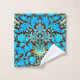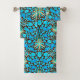 Toalla fijada en un modelo de William Morris del vintage de los jacintos, tulipanes y hojas, en las sombras de la aguamarina suave y del azul cerúleo, acentuadas con el rosa coralino y el naranja, en un fondo marrón oscuro