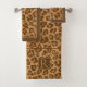 Impresión animal de leopardo en tonos marrones y juego de toallas de baño monograma. Este diseño de moda muestra una huella animal leopardo con bordes marrones y monograma.