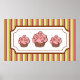 Rayas de colores de caramelo decoran esta impresión artística de pastelito rosa. Utilice esta impresión artística como decoración en una cafetería, panadería, cocina, guardería, dormitorio, etc.... El diseño es de arte original.