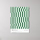 Una audaz y gráfica impresión de arte Bauhaus 1919–1923 que presenta una dinámica franja diagonal y un patrón de rejilla de ajedrez en rico verde bosque oscuro y blanco. La ilusión óptica de cambio de perspectiva a través de franjas convergentes da a esta pieza una energía hipnótica y arquitectónica arraigada en los principios de diseño Bauhaus. El verde oscuro es uno de los colores de diseño de interiores más buscados en Australia y EE. UU. para 2025, lo que hace que este póster de franjas geométricas sea una opción muy de moda para salas de estar contemporáneas, oficinas en casa y paredes de galería maximalistas.