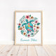 Lleva las vibraciones pacíficas del océano a tu espacio con esta hermosa impresión artística de tortuga marina boho. Rodeada de delicadas flores tropicales y ilustrada en tonos turquesa calmantes, este diseño evoca relajación y armonía con la naturaleza. Personaliza el texto con tu nombre, cita o ubicación para hacerlo verdaderamente tuyo. Perfecto para decoración costera, casas de playa, guarderías o como un regalo considerado para amantes del océano.
