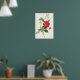 Obra de Redouté, Pierre Joseph "Nature Illustrated: Flowers, Plants and Trees, 1550-1900". Rosas rojas y hojas verdes. Impresión botánica vintage. Puede cambiar el color de fondo.
