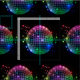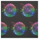 Esta tela tiene filas de las bolas de discoteca coloridas impresas en tela negra.