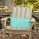 Esta almohada de acento al aire libre se muestra con un bonito diseño de huellas marroquíes de Aqua y White. Personalizar este artículo o compra tal cual. Imagen de stock