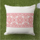Esta almohada de acento al aire libre se muestra con un bonito diseño de impresión marroquí rojo y blanco. Personalizar este artículo o compra tal cual. Imagen de stock freepik.com