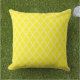 Esta almohada de acento al aire libre se muestra con un bonito diseño de impresión marroquí amarillo y blanco. Personalizar este artículo o compra tal cual. Imagen de stock freepik.com
