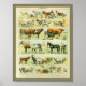 Ilustracion de color vintage de animales de granja en francés. Perros, caballos, gatos, vacas, toros, ovejas, cerdos, cabras, conejos y burros.