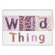Un diseño divertido con un diseño de estampado animal de safari en tonos violeta. Dice 'cosa salvaje'...