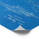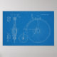 1886 ilustracion de diseño técnico de patente estadounidense para bicicletas de época. Con palancas de propulsión. También conocido como un penique o velocidad de rueda alta. Fondo del papel de impresión azul. Más impresiones de patentes en nuestra sección "Impresiones de patentes estadounidenses". Posters de publicidad en bicicleta bajo nuestra sección "Anuncios de publicidad en época de vacas"