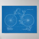 1888 ilustracion de diseño técnico de patente estadounidense para bicicletas de época. Bicicleta de cadena con suspensión de bastidor. Fondo del papel de impresión azul. Más impresiones de patentes en nuestra sección "Impresiones de patentes estadounidenses". Posters de publicidad en bicicleta bajo nuestra sección "Anuncios de publicidad en época de vacas"