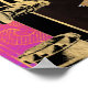 La impresión de arte de collage de Kitschy presenta un recorte fotográfico tintado de la mujer de los años 30 con gafas de vapor añadidas, fijador de luz vintage y máquina voladora, cinta washi con texto "pionero" sobre fondo de arte pop rosa y oro magenta colorido