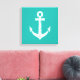 Dibujo nautico vintage envuelto en papel de lienzo. Anclajes acolchados de color azul turquesa Aqua con la huella de un símbolo. Diseño artístico rústico con símbolo de icono marítimo. El estilo estridente se ve agrio. Decoración moderna en la pared para boda, hogar, dormitorio, tienda, oficina, etc. de vela temática. Disponible en diferentes colores.