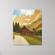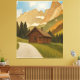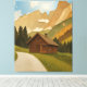 Una acogedora cabaña de madera en un paisaje montañoso escénico, elaborada en un estilo de collage de papel en capas. Decoración rústica perfecta para añadir calidez y encanto inspirado en la naturaleza a cualquier espacio.
