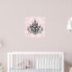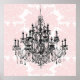 Arte de pared de oficina y boutique de candelabro de cristal negro y blanco con damasco rosa y blanco femenino elegante. Elija un marco para que coincida con su decoración. Arte de pared de candelabro rosa elegante y clásico.