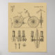 1892 ilustracion de diseño técnico de patentes estadounidenses para bicicletas de época. Suspensión de primavera en los ejes de rueda. Con detalles de los manantiales. Frenos de mano. Fondo de papel antiguo. Más impresiones de patentes en nuestra sección "Impresiones de patentes estadounidenses". Posters de publicidad en bicicleta bajo nuestra sección "Anuncios de publicidad en época de vacas"