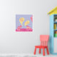Impresión de arte de ranas tontas contando chistes, en tonos de rosa eucalipto, azul pervinca y amarillo. Total 24x24".