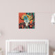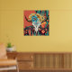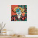La impresión de arte al estilo nativo americano cuenta con un cráneo de búfalo con plumas de flores coloridas y un fondo rojo.