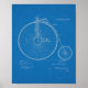 1881 ilustracion de diseño técnico con patente estadounidense para bicicletas de alta velocidad o Penny. Palanca propulsada. Fondo del papel de impresión azul. Más impresiones de patentes en nuestra sección "Impresiones de patentes estadounidenses". Posters de publicidad en bicicleta bajo nuestra sección "Anuncios de publicidad en época de vacas"
