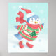 Un Pingüino festivo de invierno se desliza alegremente a través del hielo mientras delicadas copas de nieve caen contra un cielo azul minado! Ilustracion original del artista Noël Snow.