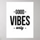 Obtén este hermoso poster de tipografía con sólo buenas vibraciones. La vida es mejor cuando tienes buenas vibraciones. El término "buenas vibraciones" significa las vibraciones que se dan al mundo y se reciben de vuelta. Las vibraciones están a nuestro alrededor.