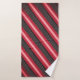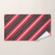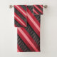Este diseño crea una imagen profunda, lujosa y ligeramente vintage al mezclar sin inconvenientes una combinación de rayas estampadas con tonos cálidos de rosa salmón, rojo, un toque marrón y tonos de ruby antiguos sobre un fondo sobrio y negro, que transmite un encanto de elegancia y sofisticación modernas, creando un diseño de acento con toallas de baño visualmente dinámico.
