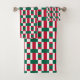 Conjunto de toallas de baño de 3 y accesorios de decoración de mobiliario de hogar casual con diseño de cuadros de diseño de patrones de impresión de color rojo blanco y verde por TheFabricSeal en Zazzle. #ZazzleMade https://www.zazzle.com/store/thefabricseal Este diseño con patrones geométricos presenta una combinación de tres colores usada para muchas cosas incluyendo un gran número de banderas de todo el mundo. El estilo de patrón está influenciado por audaces brotes de arte con temática de color, Navidades, edredones de edredón, apliques, piezas de trabajo, artesanía, arte folclórico, diseños de banderas de todo el mundo, incluyendo México. Un diseño, colores y regalos perfectos para cualquier época del año.