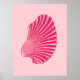 Imprimir en un patrón de impresión en bloque, basado en una cáscara de vieiras, en rosa fucsia profundo sobre un fondo rosa pastel