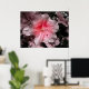 Fotografía de una azalea rosa suave, los pétalos salpicados de gotas de lluvia después de una tormenta de primavera y realzados por el color selectivo.