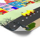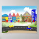 Una bonita impresión de cartel colorido con casitas, iglesia, árboles, un pueblo pequeño adecuado que quedará genial en un cuarto de nursery o de niños.