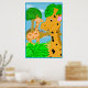 Una divertida ilustración de dos jirafas en un paraíso de la selva. Este es un gran cartel para el dormitorio de un niño. El color de fondo es personalizable.