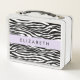 Elegante, elegante y sofisticado patrón de cebra en color blanco y negro. Un regalo moderno y de moda, perfecto para el amante de la impresión animal en su vida. Personalice agregando su nombre, apodo, monograma o iniciales.