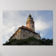 Foto de la torre del castillo a la luz del sol de la noche, en el lugar declarado patrimonio mundial de Český Krumlov en la República Checa. La torre y el edificio conocido como pequeño castillo, que data del siglo XIII, forman parte del gran complejo de castillos. Para una impresión más grande, sólo tiene que hacer clic en el botón personalizar y seleccionar su tamaño.